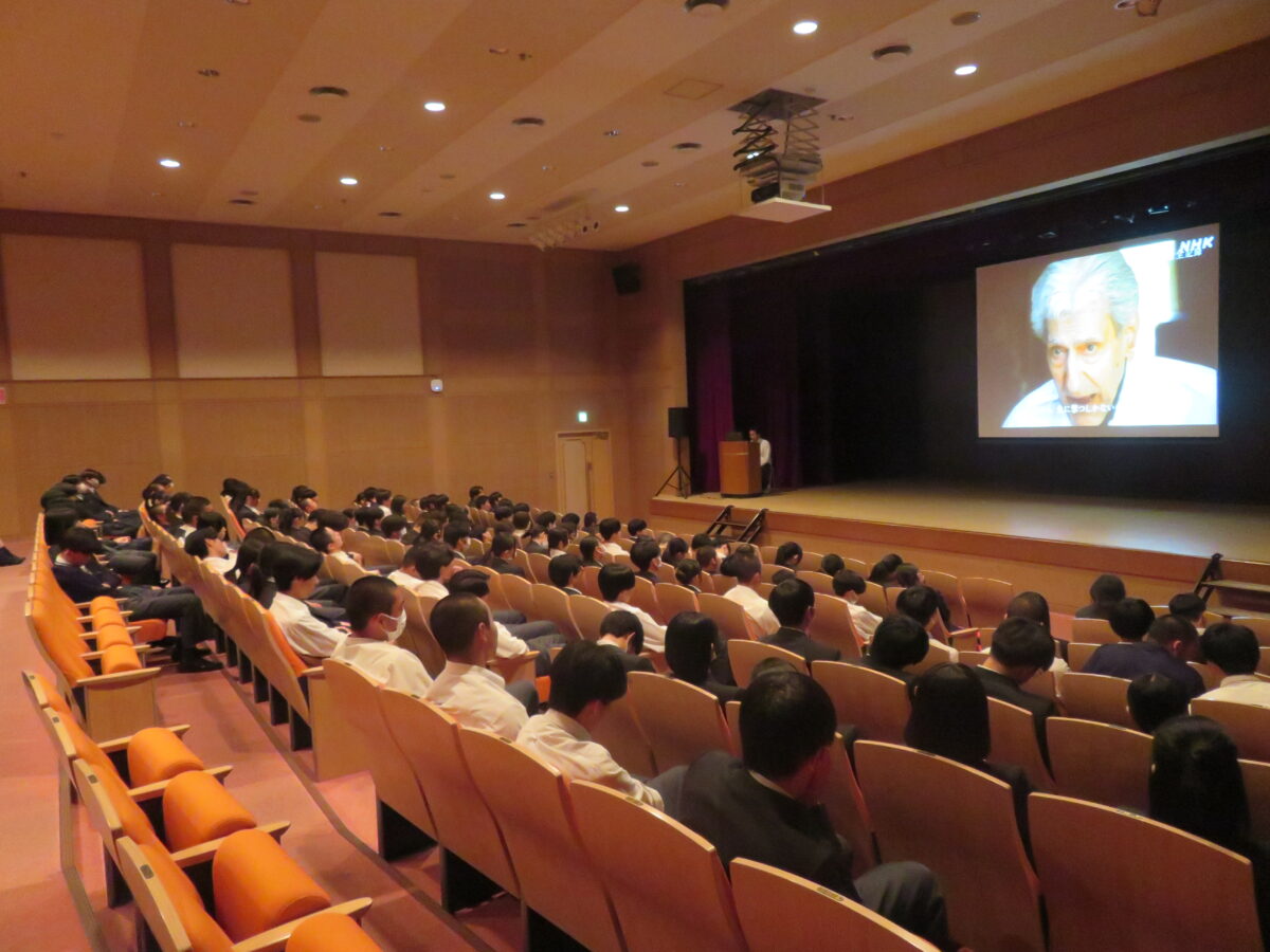 6限の時間に講堂にて、高校2年生を対象とした学年集会を実施しました。11月に修学旅行で訪れる沖縄について、事前学習として戦争に関する映像を見ました。修学旅行に向かう前に正しく学んでから、現地を訪れたいと思います。