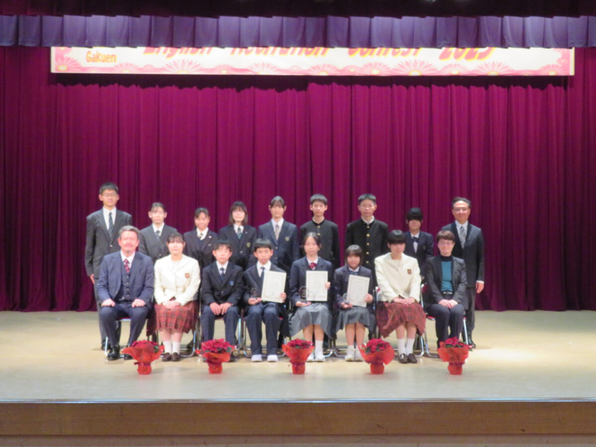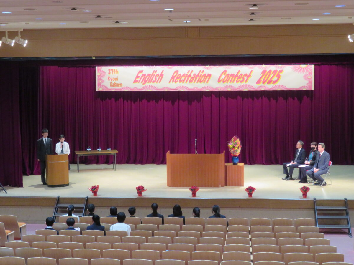 午後より講堂にて、英語レシテーションコンテストを実施しました。共栄学園中学校の3年生から選出された2名のほかに、外部よりお越しいただいた中学生のみなさま10名の方にご参加いただきました。今年も非常にレベルの高いコンテストとなり、本校の出場生徒にとっても良い経験となりました。