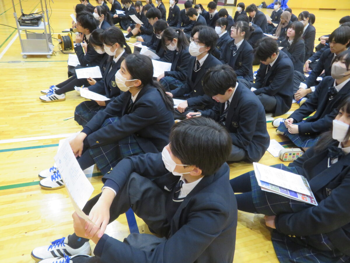 11月5日 (水) 6限の時間に大体育館にて、高校2年生を対象とした学年集会を実施しました。まもなく迎える沖縄修学旅行について、JTBの引率職員の方をお招きして持ち物や日程などについての最終確認を行いました。