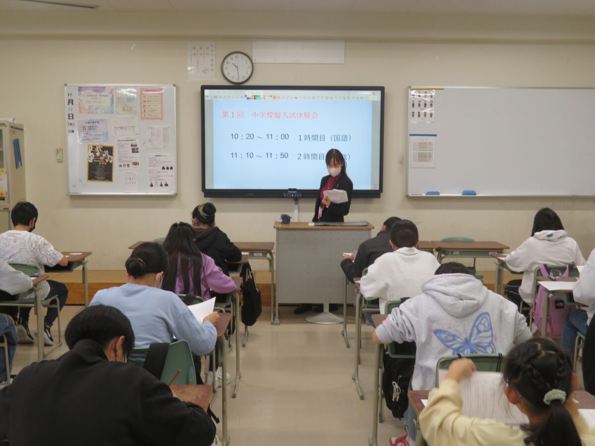 第1回中学模擬入試体験会を実施しました。本校の受験をお考えいただいている小学生と保護者のみなさまにご来校いただき、国語・算数・英語(英語は希望者のみ)の3科目の模擬試験を受験していただき、保護者のみなさまには入試に向けての対策をお話いたしました。当日お越しいただいたみなさま、ありがとうございました。