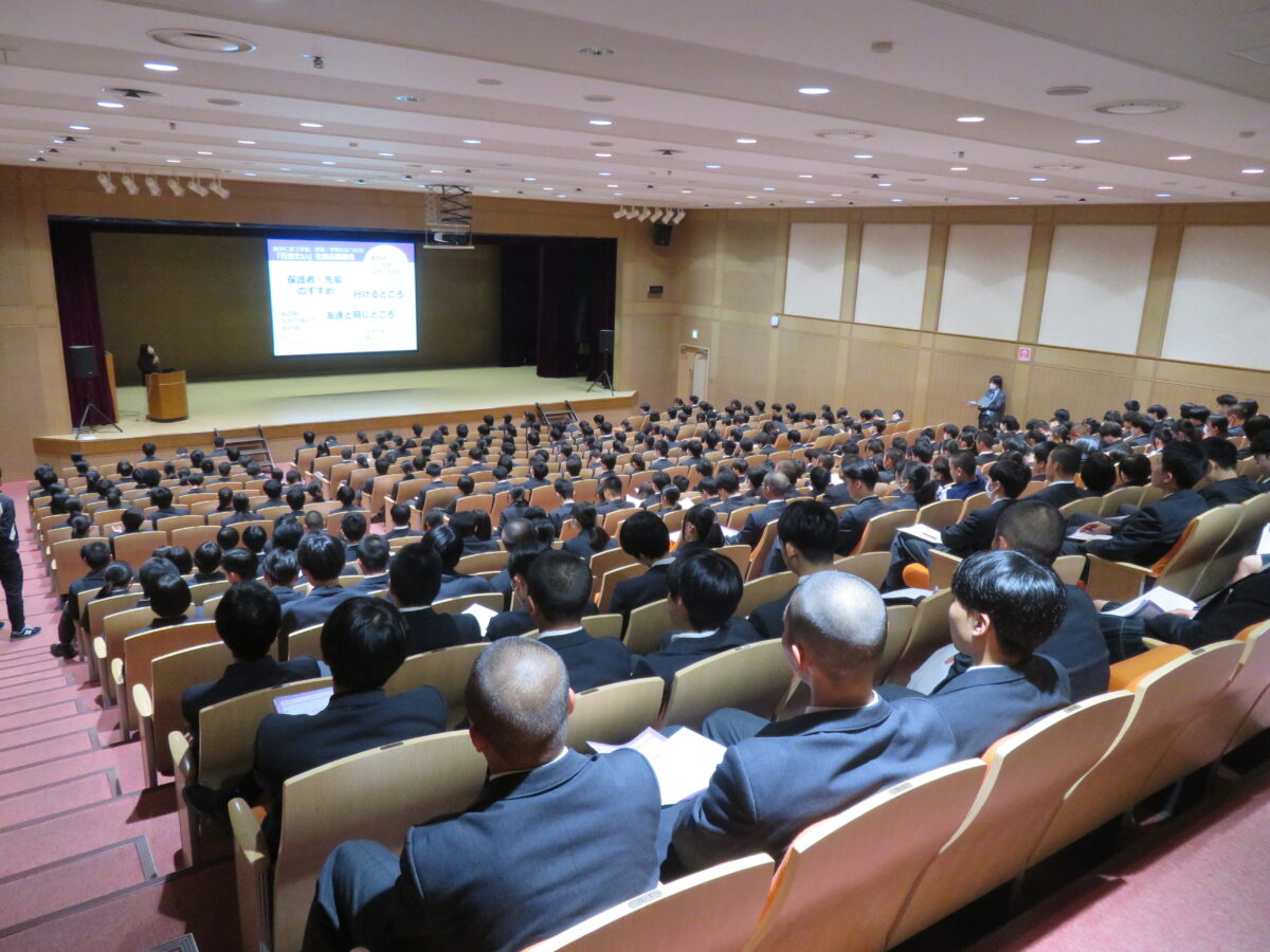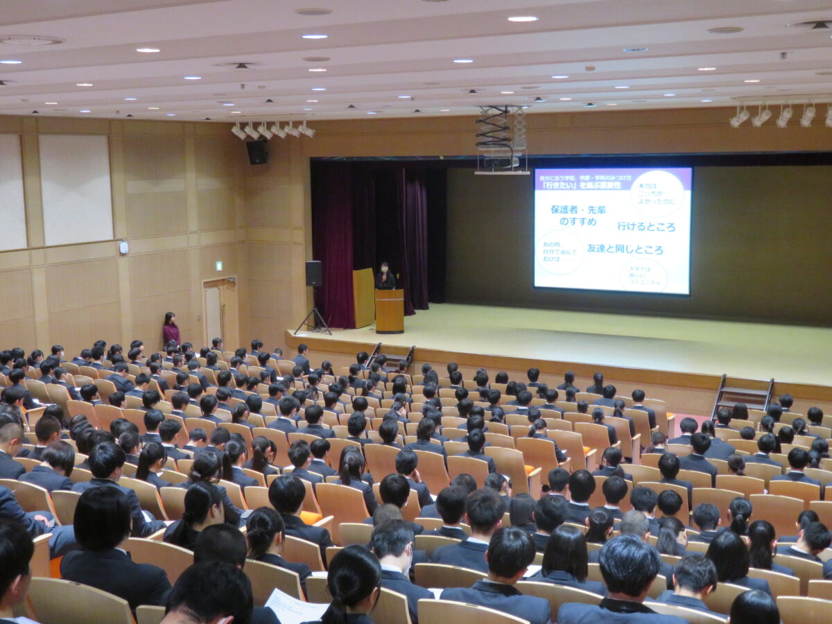 6限の時間に講堂にて、高校1年生を対象とした進路ガイダンスを実施しました。外部講師の方をお招きして、大学や学部の選び方についてお話していただきました。高1のみなさんも、将来のことを少しずつ考えていきましょう。