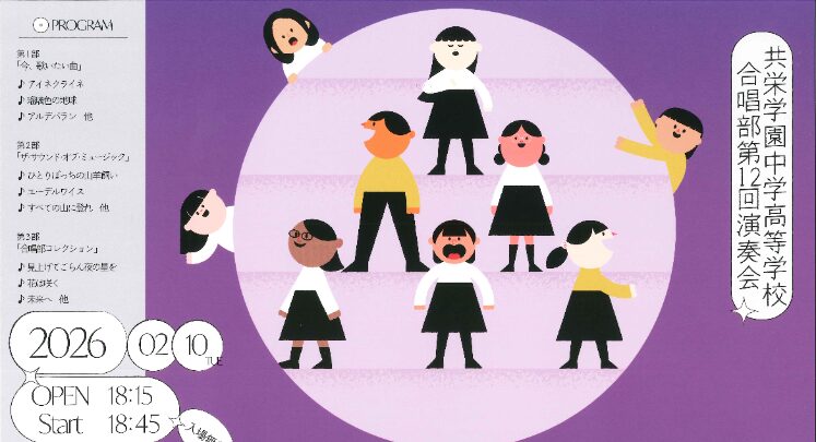 共栄学園中学高等学校合唱部は、来る2月10日 (火)、第12回となる演奏会を実施いたします。会場はかつしかシンフォニーヒルズ・アイリスホール、18:45開演予定です。