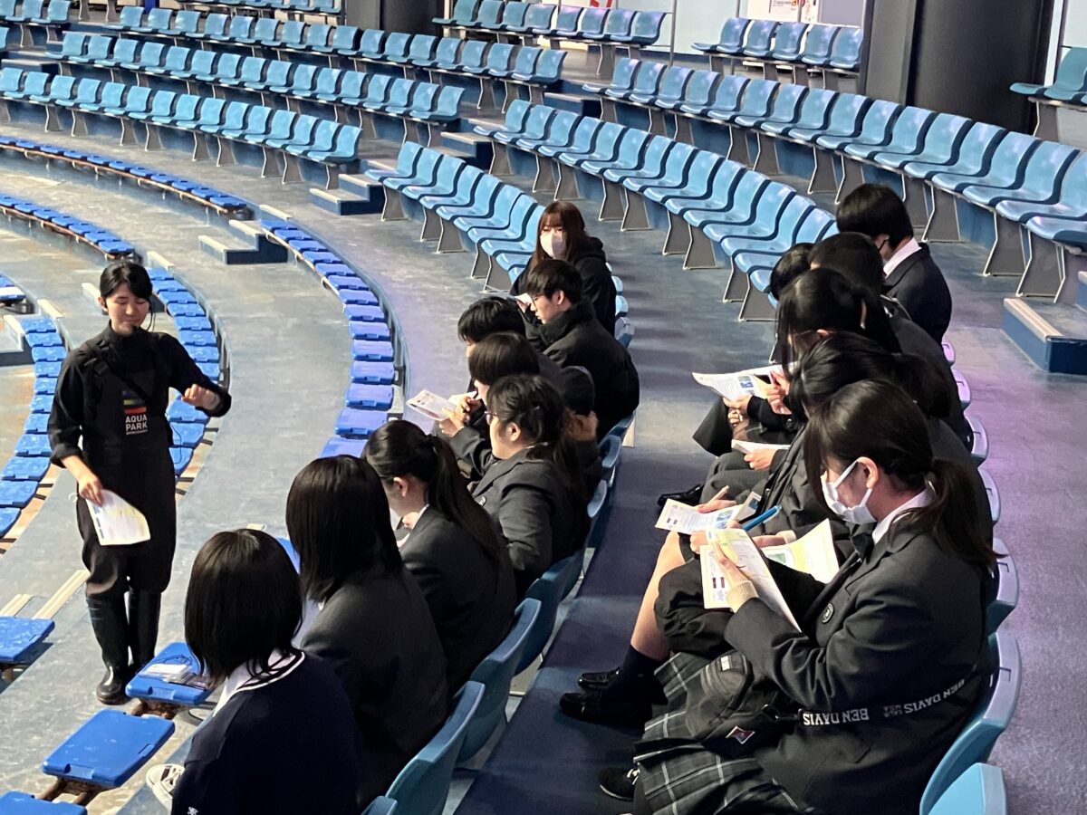 中学1年生から高校2年生の希望者を対象とした、K-チャレンジ (基礎実験) 水族館ツアーを実施しました。本校理科教員引率のもと、生徒たちは「マクセル アクアパーク品川」を訪れ、水族館職員の方々からの職業講話・SDGs講話を受けたあと、バックヤードツアー・園内見学を行いました。生徒たちは興味津々な様子でツアーを周り、とても満足した様子でした。