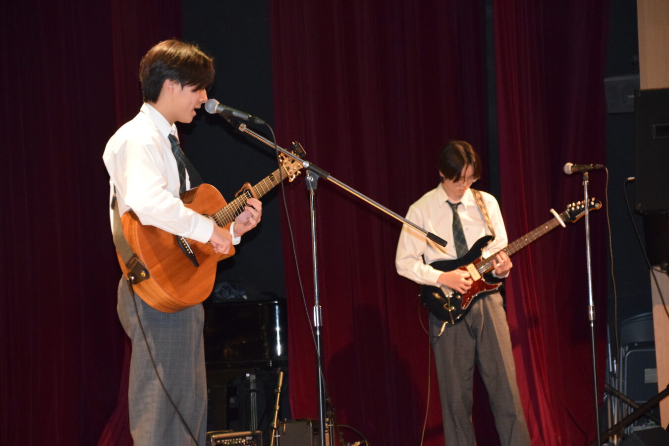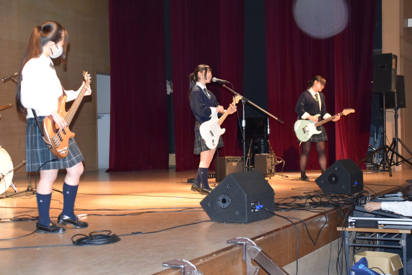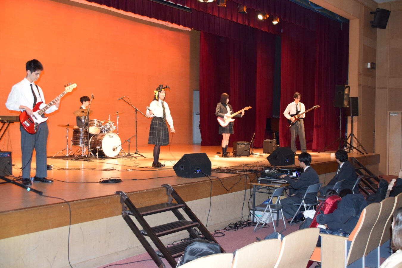 10時30分より講堂にて、軽音楽部のライブを実施しました。Official髭男dismやKing Gnu、緑黄色社会などを含む、全9曲を演奏しました。当日お越しいただいた生徒のみなさん、保護者のみなさま、ありがとうございました。これからも軽音楽部の応援よろしくお願いいたします。