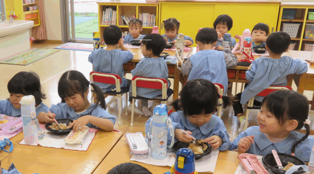 22日は焼き肉丼でした。ボリュームがありましたが子ども達はモリモリ食べて完食するお友だちもいました。