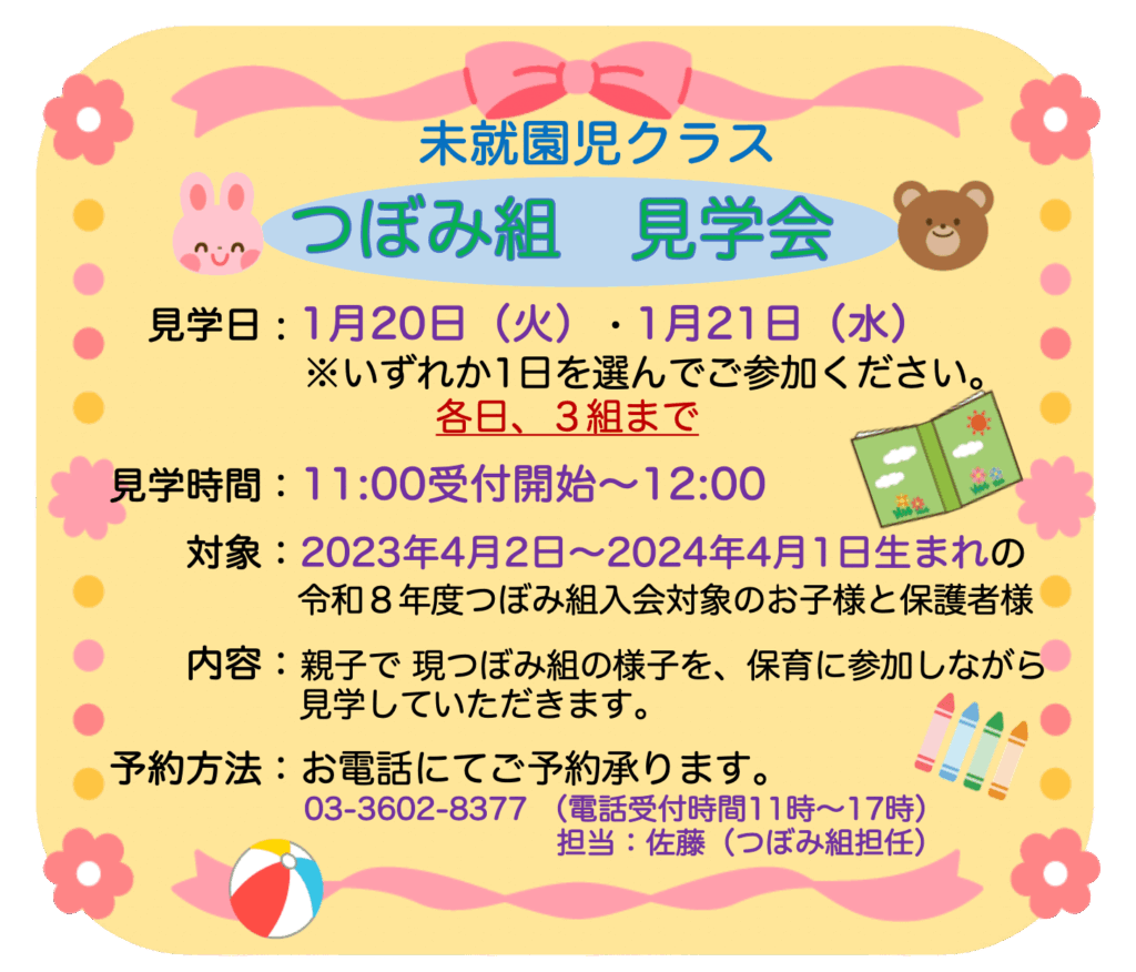 ☆令和8年度つぼみ組入会対象児の方へ 見学会のお知らせ☆