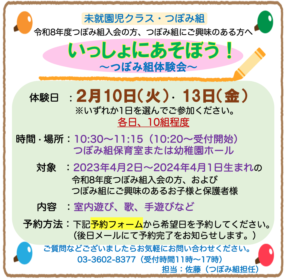 ☆令和8年度つぼみ組体験会のお知らせです☆
