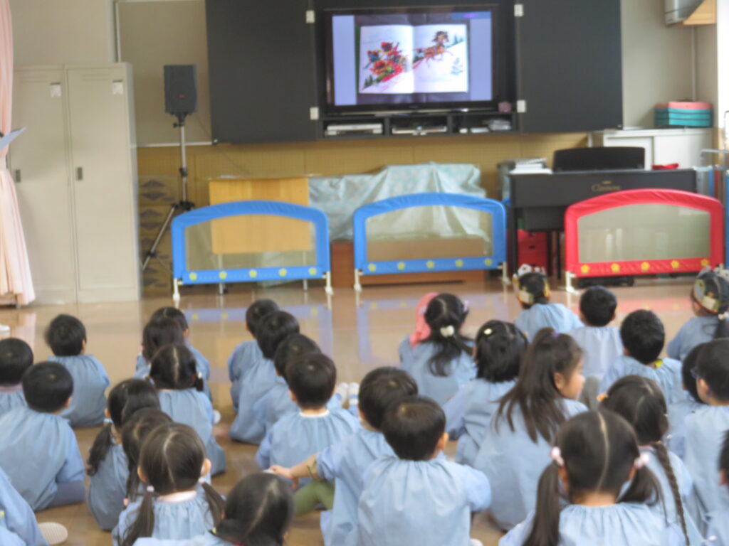 お楽しみは絵本シアター「 ジングルベル 」のお話でした。楽しい気持ちが膨らんできますね。