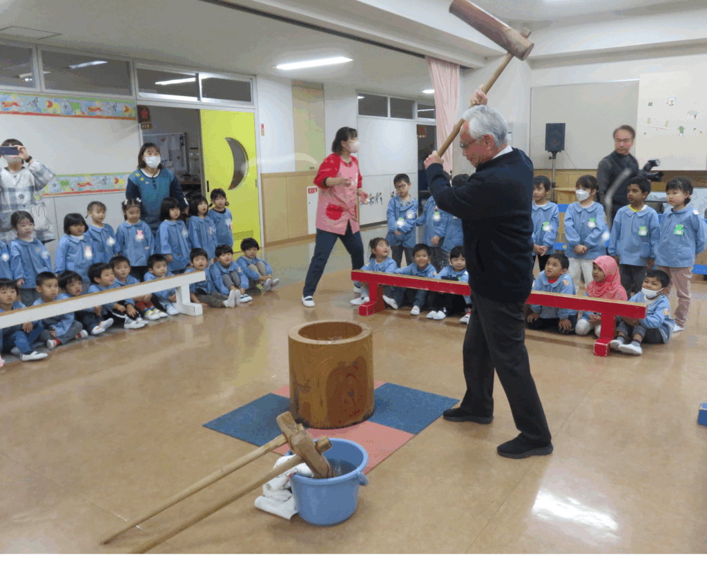 共栄幼稚園の伝統「きょうえいようちえんのもちつきは・・・」🎵