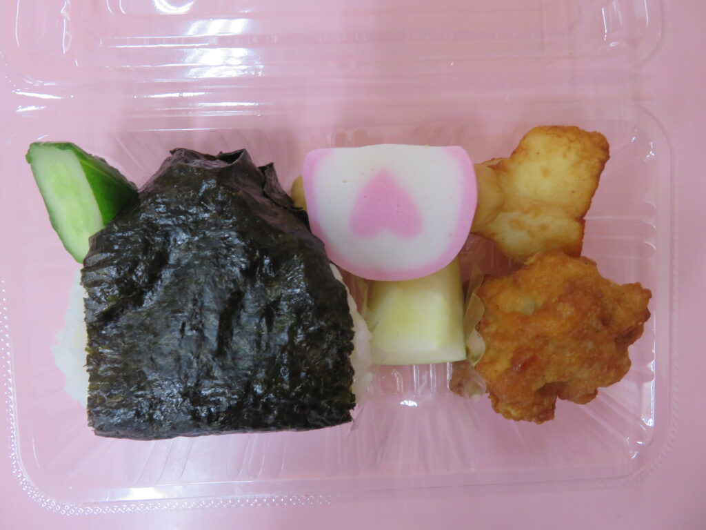 今日の給食は学食のおにぎり弁当でした。