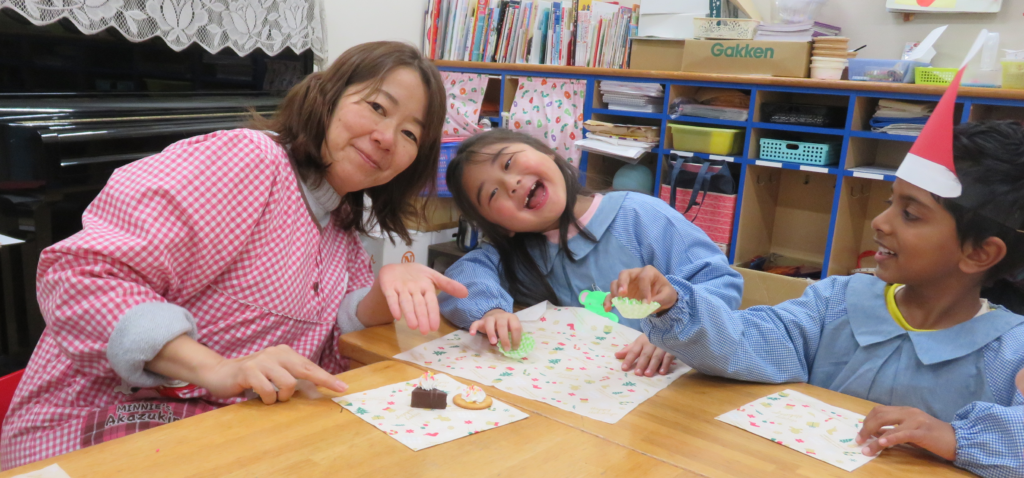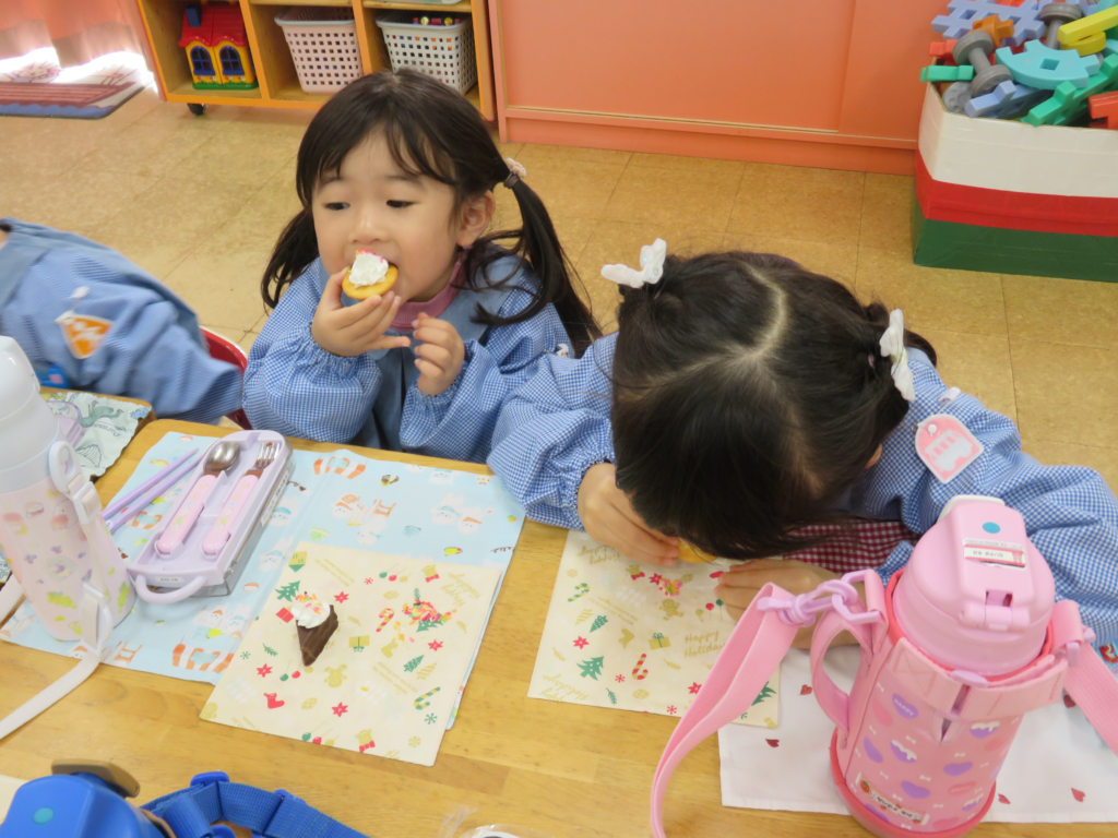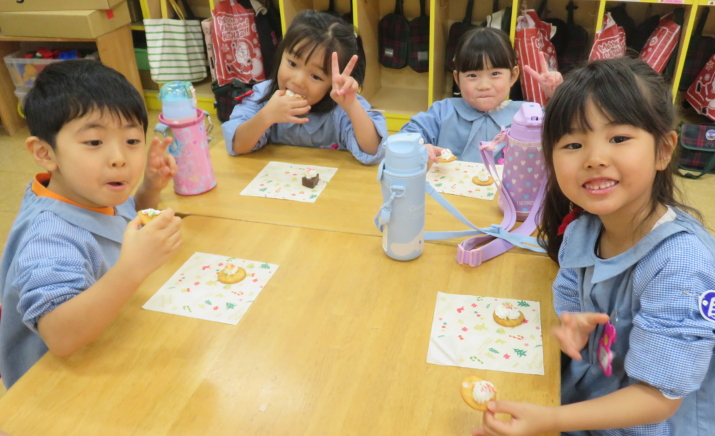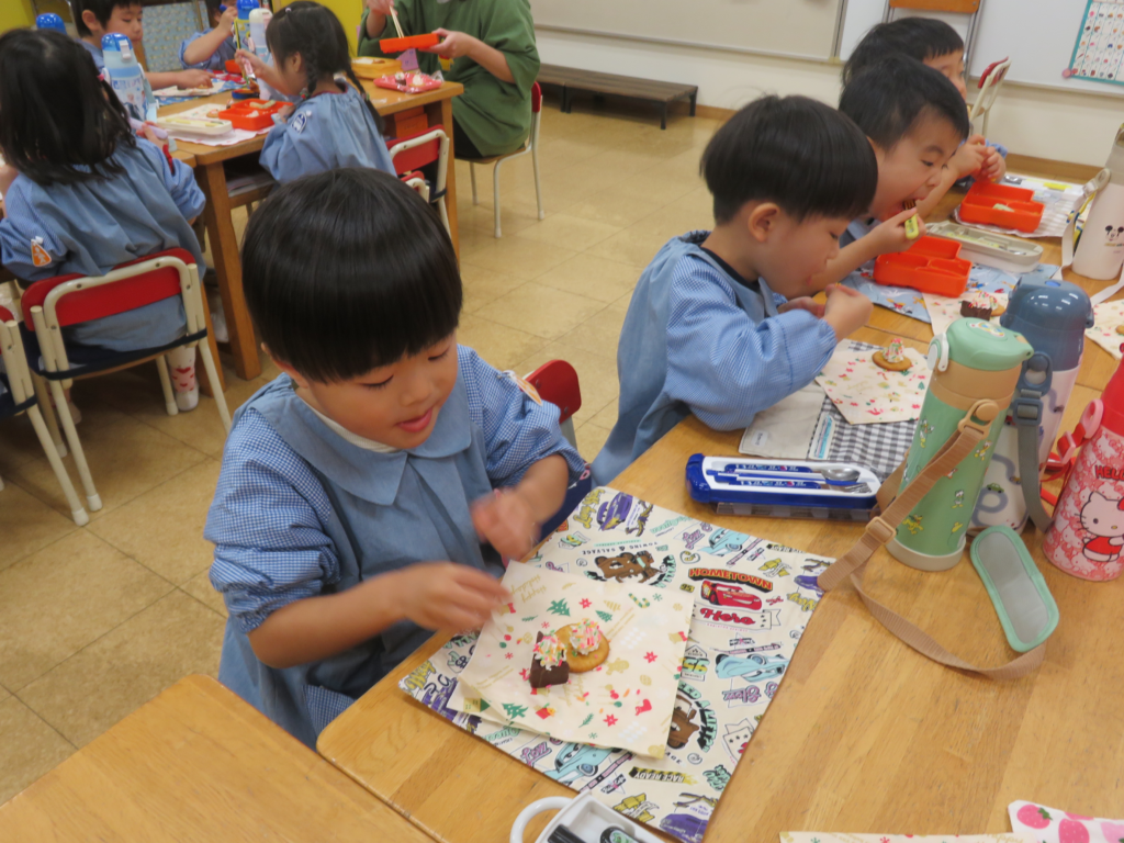 給食の後、自分でデコレーションをしたおやつも食べました。