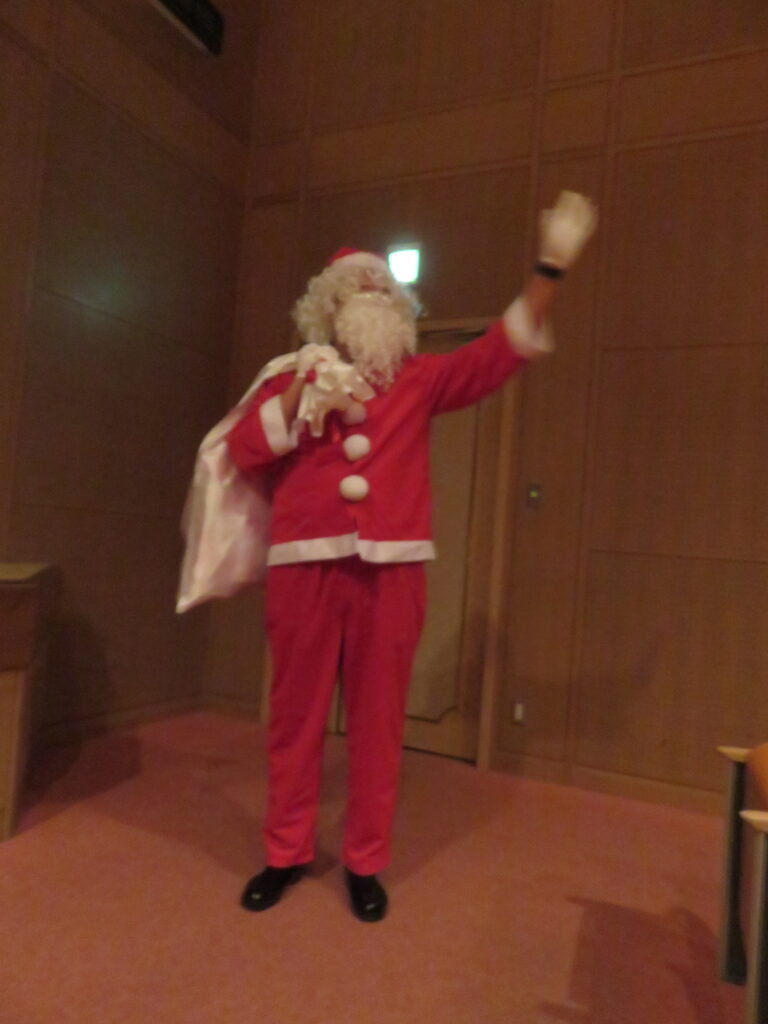 サンタさんが来てくれました。今年のサンタさんはとても背が高い方です!