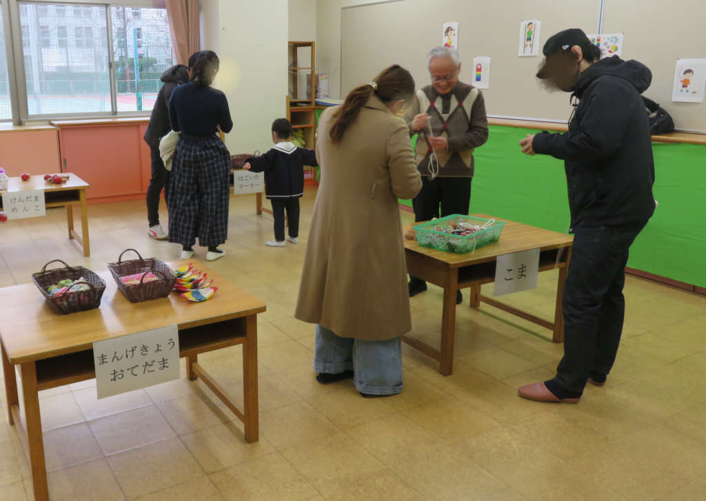 園長による昔遊びの部屋は子ども達には新しい大人にはちょっと懐かしい、一緒に遊ぶほほえましい空間となり、にぎわっていました。