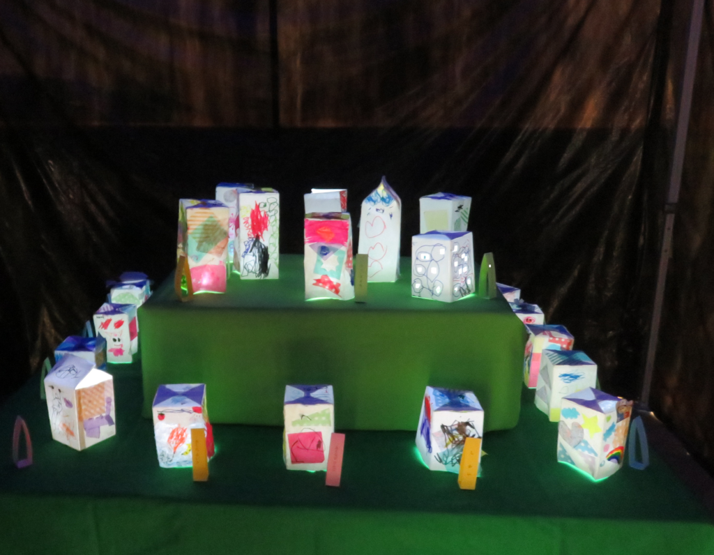 年中組の親子制作「ランプシェード」に光が入って幻想的!