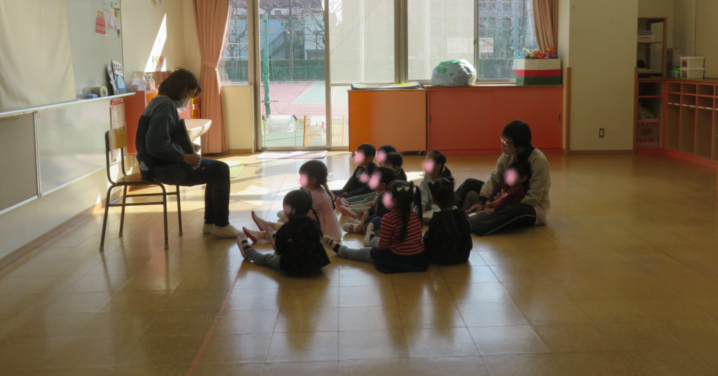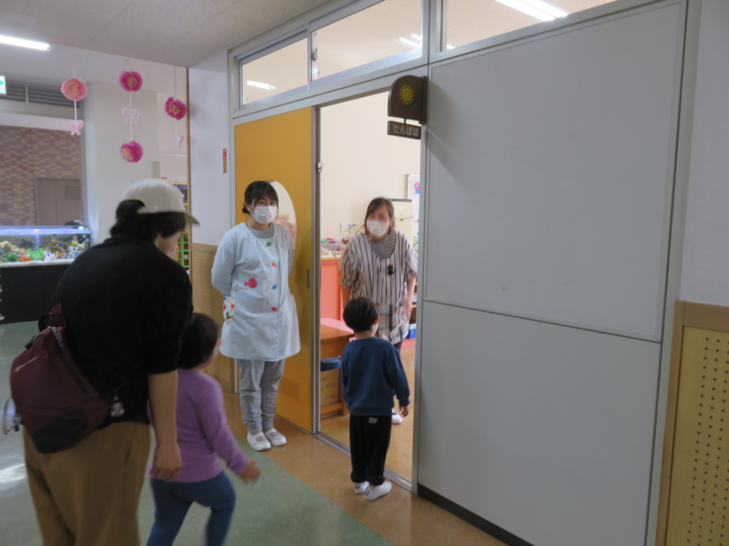 大人が説明を聞いている間に子ども達は保育体験です。