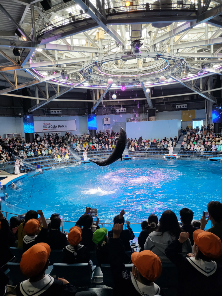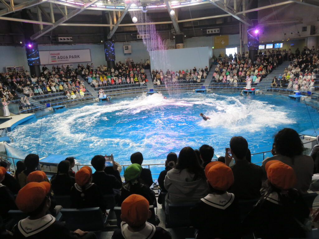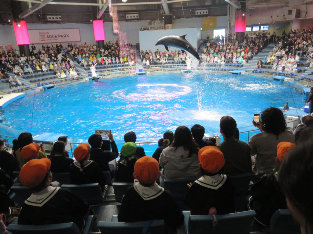イルカのショーは歓声が上がるほど盛り上がっていました。