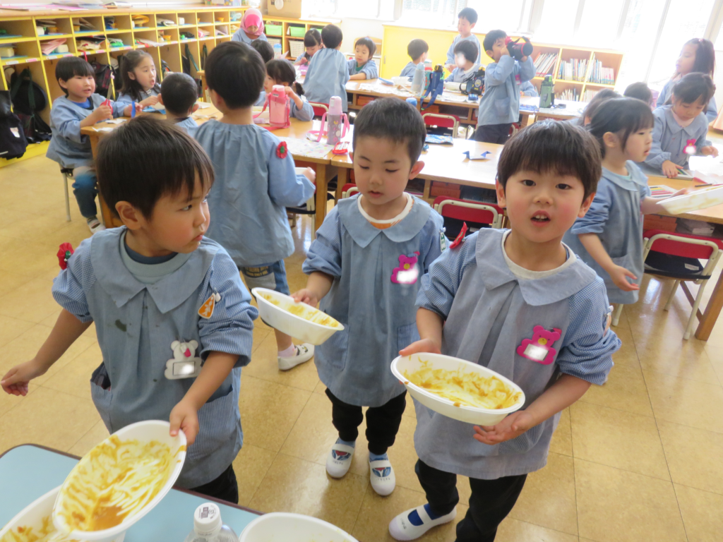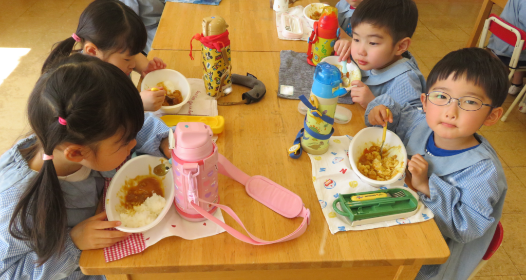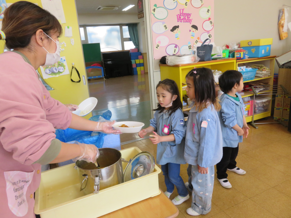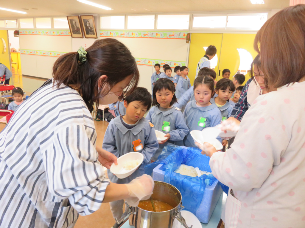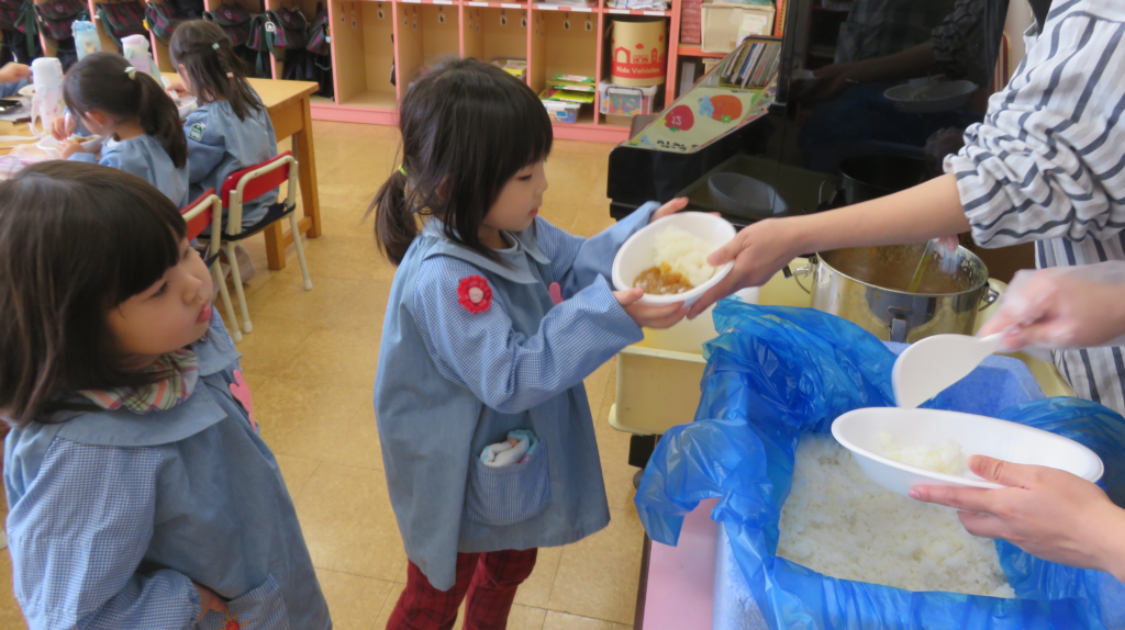 今日は、小学校の給食みたいに子ども達の目の前で配膳される特別な給食でした。