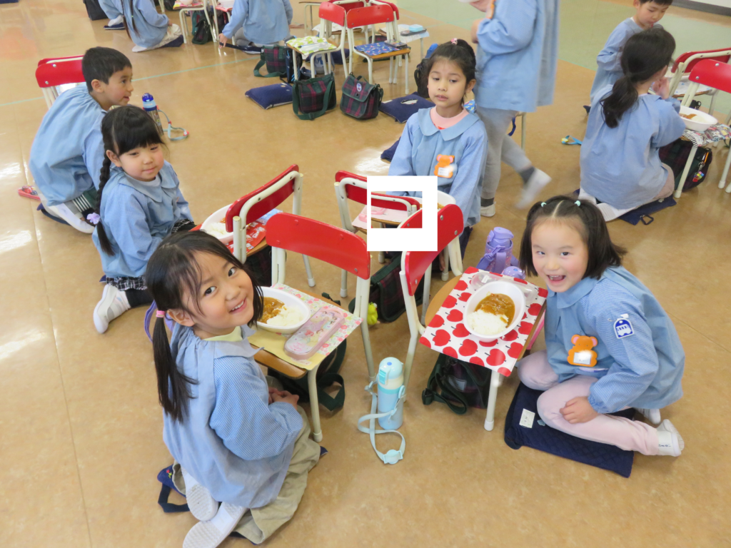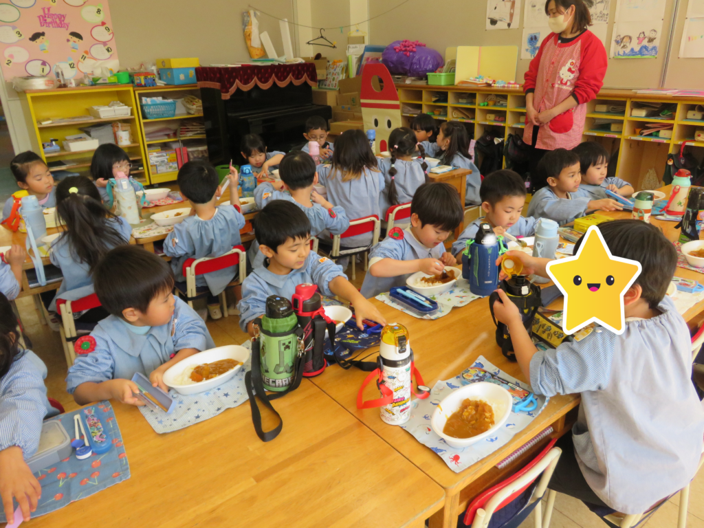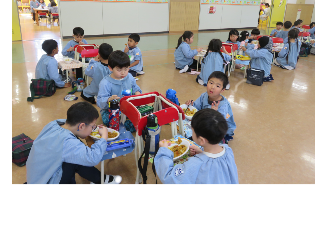 年長組は学年のみんなでホールに出て一緒にいただきました。